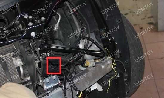 Colocar el módulo al menos sobre el chasis de viga de accidente. Asegúrese de mantener casi el mismo nivel como los faros para evitar daños de agua.