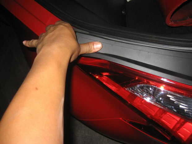Abra la portezuela y encontrar la placa de la cubierta cerca de las luces traseras. Pop con los dedos.