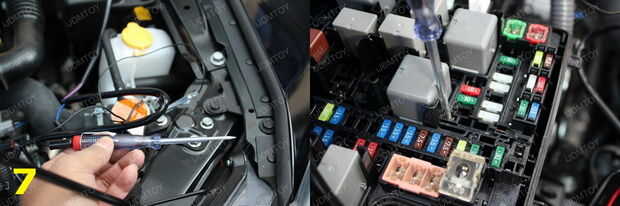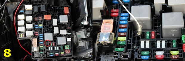 8.) abre su caja de fusibles y uso una prueba de luz para saber que fusible abierto ranura proporciona energía cuando el vehículo está. Con este conocimiento, conecte el cable rojo del interruptor a esta fuente de energía (que tenga para extender los cables para llegar). Hacerlo le permitirá encender solamente las luces de niebla sólo si el vehículo está para evitar que accidentalmente deja encendido si no usas el coche. Para una instalación fácil, puede conectar directamente el cable blanco a la deseada fusible ranura para cuando el vehículo está encendido, las luces de niebla se encenderán automáticamente con él.