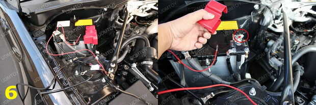 7.) Conecte los cables de transmisión positiva y negativa cables a la batería del coche directamente.