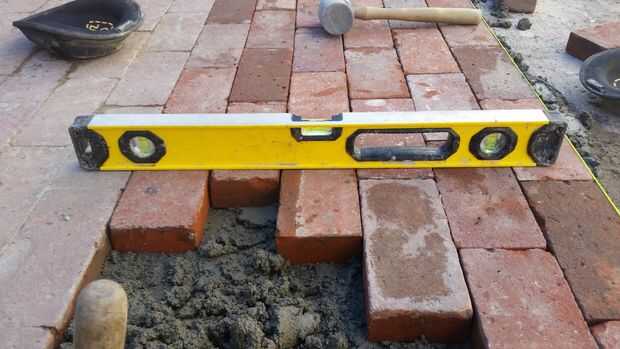 4. una vez que has puesto 3 ladrillos en usar su nivel para asegurarse de que son incluso.