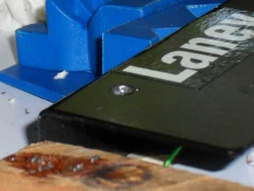 Apoyar su pedal firmemente para evitar cualquier movimiento durante la perforación (utilicé una prensa). Poner un trozo pequeño de madera debajo del lugar que desea taladrar, para proteger su mesa de trabajo en caso de que la broca va a través del metal muy rápido como lo hacen generalmente.
