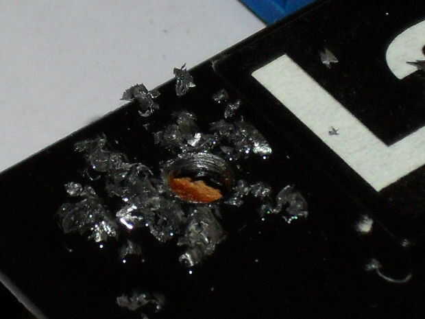 Una vez que tu perforación se ha completado, usted encontrará un montón de fresas todavía adherido al caso. Usé un poco de esmeril Dremel para cortar y limpiar los orificios. Esto no es sólo un problema estético: perforación deja bordes afilados que pueden lastimar los dedos. Si no tienes una herramienta giratoria, un recto pequeño archivo se encargará de las fresas. A continuación, tendrás que realizar la misma tarea dentro de los agujeros con una lima redonda. La idea es dejar un agujero limpio y suave para evitar rayar los LEDs.