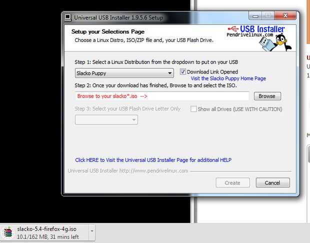 En este caso, puede elija el suyo que descargaste o seleccionar los listados. En este caso, elegí Puppy Linux como el sistema operativo desea utilizar. (La versión del instalador es 5.4, aunque actual es 5.7 (descargado que) entonces, si descarga desde el instalador, le pedirá que empezar. Espera la descarga varía con diferentes so. Mina, tomó menos de 1 hora. Una vez descargado, debe seleccionar el archivo, enchufe la unidad en y seguir las instrucciones indicadas. Una vez hecho esto, le pedirá otra vez en caso de que usted escogió la unidad equivocada. Una vez hecho, seguridad expulse la unidad y conecte en el objetivo.