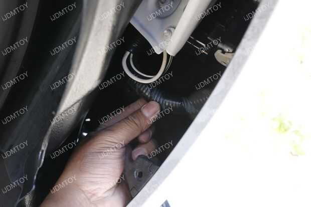 Tiempo para la parte de cableado. Cuando usted mira en la parte posterior de la ubicación de la lámpara de niebla de la distancia entre ejes, verás un mazo enorme cubierto por un tubo de cinta aislante. Desenvolver una pequeña porción de la cinta negra para exponer el cableado.