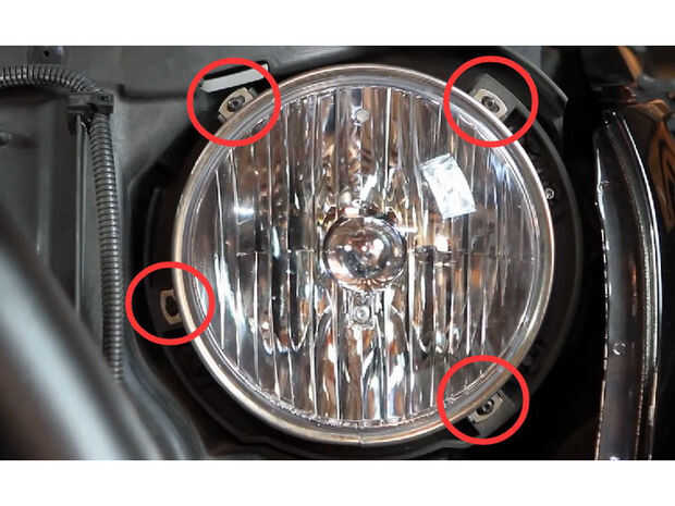 Paso 2 Retire los cuatro tornillos que sostienen el anillo de soporte de metal alrededor de los faros.