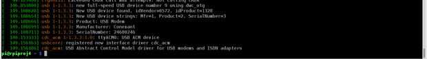 "usbcore: colocó la nueva interfaz driver cdc_acm" es otro indicador que el kernel de Linux ha detectado un módem de Hardware.