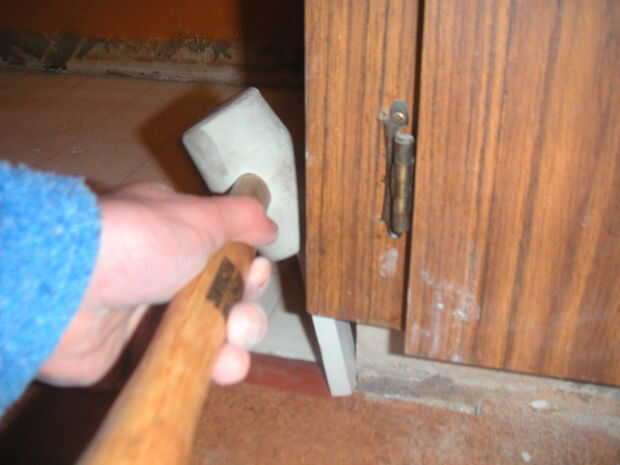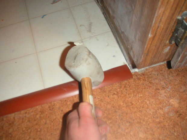 Martille ligeramente la moldura en la pista. Se comprime y luego tire hacia atrás para arriba, creando una conexión mecánica a cada superficie del piso.