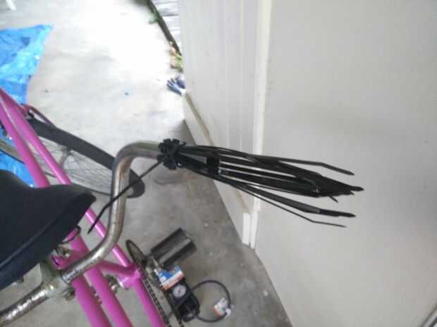 Continuar agregando lazos zip hasta que han cubierto el manillar con ellos. Usted está haciendo un tubo paralelo cremalleras lazos alrededor del manillar.
