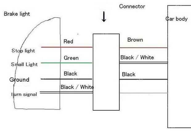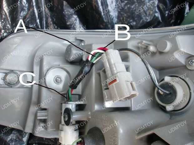 Toque en el alambre A luz de la cola, cable B a la luz de freno y C cable a tierra.