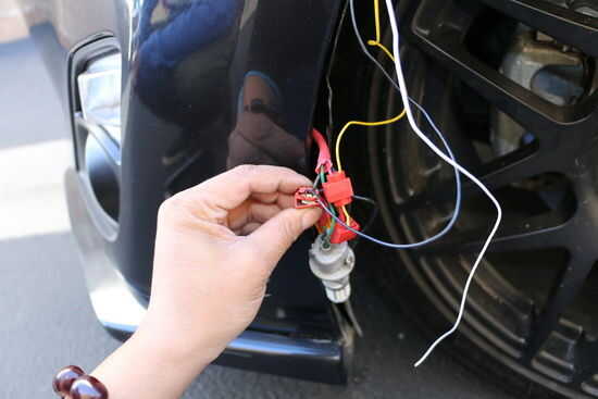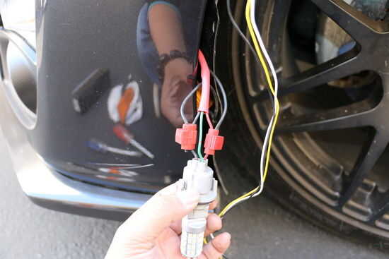 6) de los alambres del enchufe de fábrica, el negro es el cable a tierra; roja es la señal de giro y la luz es verde. Toque el cable amarillo al cable rojo del conector. Toque el cable blanco al verde. Repita los pasos del otro lado.