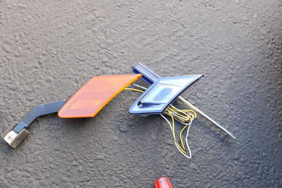 3) como en la foto, sólo hay pestañas tienen el ensamble del marcador lateral juntos. Puede utilizar un destornillador para apagar la lámpara común. La Asamblea de fábrica debe ser suelta y se puede quitar fácilmente. Hay un conector que necesita desconectar como se ve en la foto.