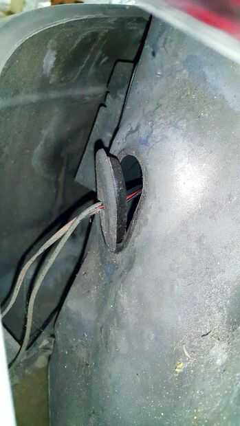 Usé este ojal, en la parte posterior izquierda, que conduce el tránsito para el sensor.
