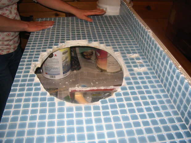 Esto es realmente su última oportunidad para abandonar esta lechada como cómo se verá en su vanidad por siempre. Si hay cualquier danglers goopy, límpielos ahora. Deje un borde alrededor de la parte superior del tablero de la bonito, aseado y donde su parte superior se reúne el borde y recortar. Limpie los orificios donde atravesará el tapón de la grifería y el desagüe. Limpiar la divet desbordamiento y el agujero donde se sentará el fregadero.
