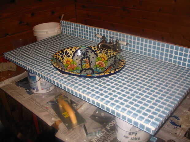 Primero trajimos en el tocador, entonces la cubierta. Si usted está a medio camino práctico, o tener una mano amiga, este debe ser su alcance. No sea intimidado. El fregadero es sostenido en lugar por su propio peso y por las tuberías solo. Las tuberías de desagüe (el codo) viene de atrás (una vez más, la vanidad no tiene detrás) y conectar las líneas de suministro a la llave nueva es bastante sencillo, especialmente si fueras quien zafado del fregadero viejo.