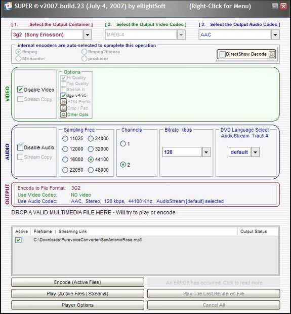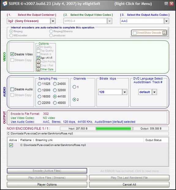 Paso 6: Convertir archivo de. mp3 a .3g2 (un archivo 3GPP2) con Super