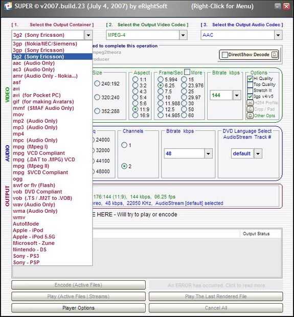6. antes de continuar, necesita decirle Super donde guardar su archivo. Derecha haga clic en ir a gestión de ahorro de archivo de salida para elegir donde guardar el archivo. De lo contrario se irá a su directorio raíz (C: /). Haga clic en el botón Encode (Active Files) por debajo de la zona gris para hacer la escritura.