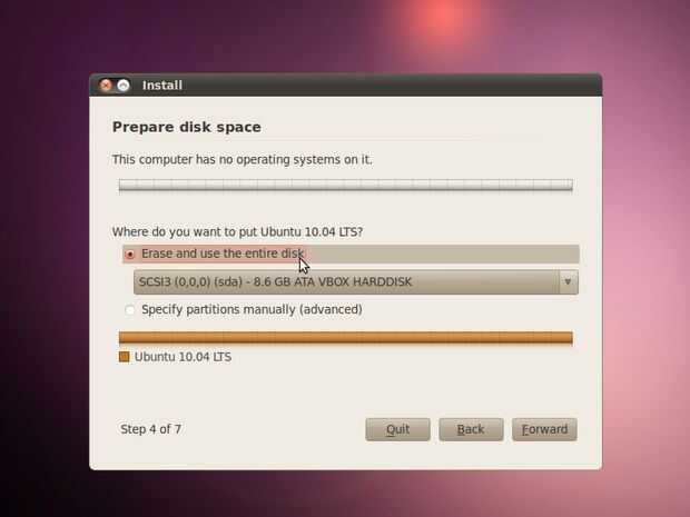 La siguiente opción es borrar y usar el disco entero. Tenga en cuenta que por borrar significa todo! Nada permanecerá desde el sistema operativo original. Esta es mi opción más utilizado como yo uso Ubuntu para kioscos bastante a menudo en el trabajo. Le escribo otro Instructable pronto detalles de cómo hacerlo.