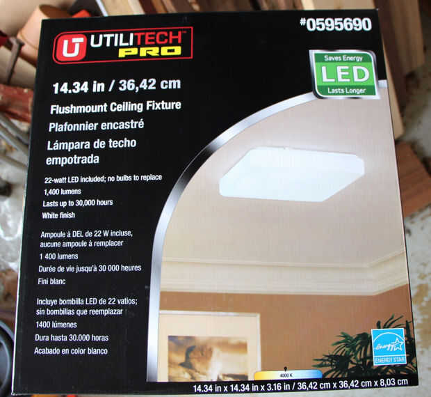 Si usted ha leído alguno de mi instructables otros verá que soy una gran fan de las luces de tira del LED. Ya he instalado un juego en mi cocina y he instalado un juego en mi edificio de almacenamiento exterior. Tenía la intención de hacer algo parecido en mi garaje y me encontré en una completa 22 vatios 1400 lúmenes LED lámpara en LOWES para menos $40! Esto cambió mi mente enseguida y comprado y uno de los accesorios había instalado ese día!