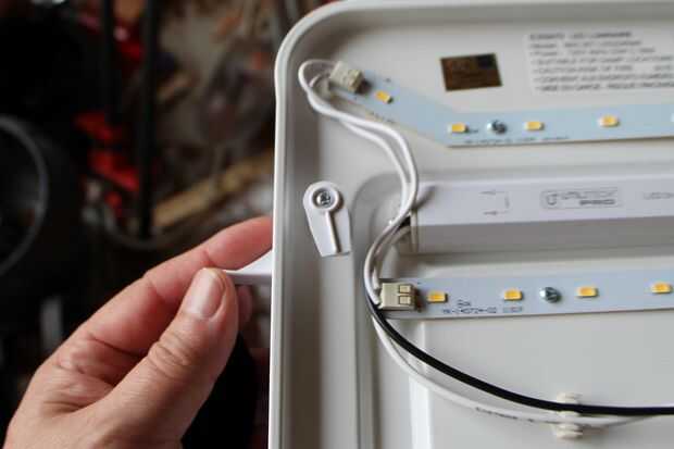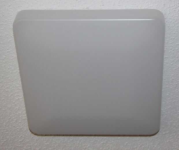 Me impresionó - la placa trasera estaba hecha de metal, probablemente acero y la sombra / cubierta fue una especie de ligero plástico translúcido. El aparato entero pesa menos que la cubierta de la lámpara antigua. Dos plástico batiente cierres mantener la sombra en su lugar - esto hará que la limpieza mucho más fácil que el accesorio que sustituyo porque con el viejo aparato tenía que sacar dos tornillos sosteniendo la lámpara. Me sorprende que al menos uno de los colores no fue roto en los últimos 50 años!