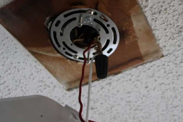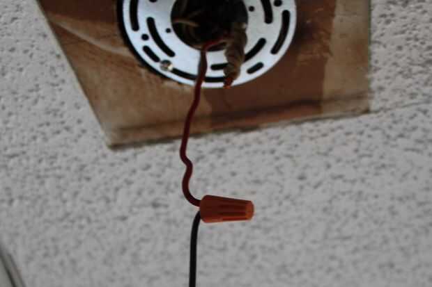 Luego conectar los cables de trenzado de la luminaria a los cables de la casa con las tuercas de cable suministradas. En mi caso los capuchones no eran lo suficientemente grandes como para unir el cable blanco para el paquete de cable en el accesorio y tuve que volver a usar la tuerca de un cable que se me quitan.