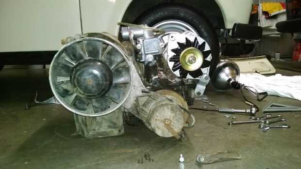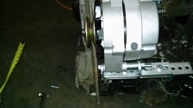Una vez encontré un ángulo adecuado para el alternador que el carburador, he ajustado el soporte y comprobar la alineación de la pullies con un trozo de varilla roscada. He utilizado este mismo método cuando construí un sistema de aire acondicionado de mi Fiat Spider.