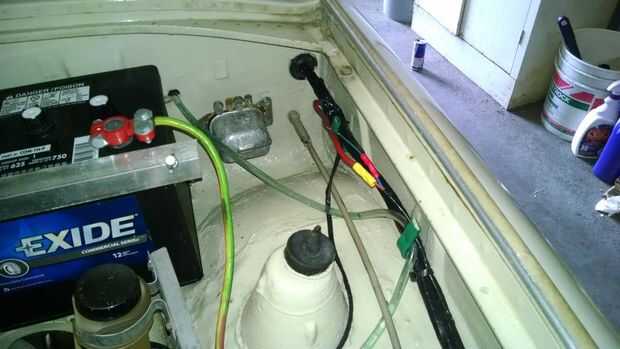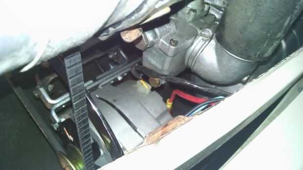 Primero el alternador. Hay tres cables. Uno es un alambre grueso (AWG 8) que va desde el poste en el alternador para el puesto en el motor de arranque. Este cable traslapará con un alambre más grueso que va al post POS en la batería.