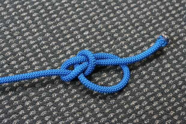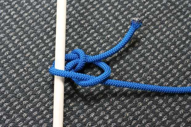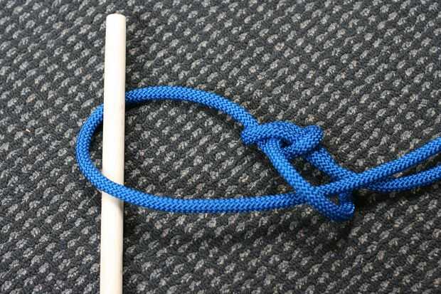 Atar simplemente un as de guía para crear un lazo sólido. El otro extremo de la cuerda a través de la anilla y volver a través del bucle de alimentación. Eso es todo!