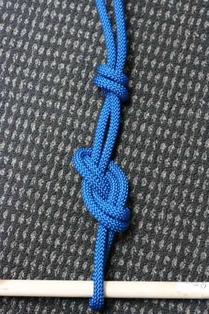 Con la cuerda extra que viene hacia fuera, atar un nudo doble. Esto mantendrá la cuerda extra en lugar y proporcionar un nudo que se pegaría en el nudo de 8 en el caso improbable de que la figura-8 empezaría a venir deshecho.