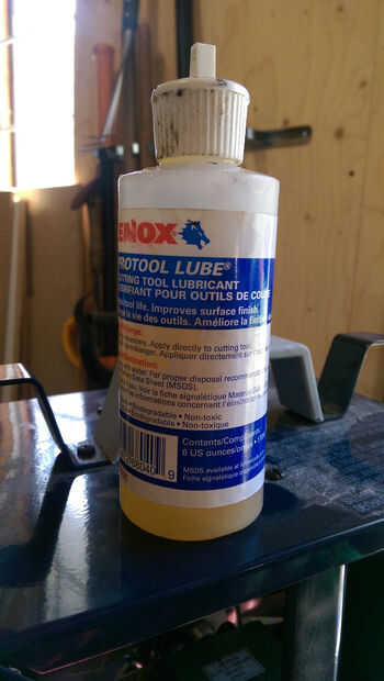 Además, para ayudar en el proceso de perforación y proteger sus pedacitos de taladro, creo que es una buena idea para perforar a través de una gota de lubricante para herramientasde corte. Opcional.