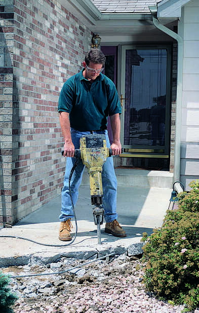 Quitamos el paseo entero usando un martillo perforador eléctrico de 120 voltios. Esta herramienta hizo brevemente el trabajo de él y valió la pena el precio del alquiler $50. Al usar el martillo neumático, empiece en una esquina exterior y, saltar lejos piezas de 8 pulgadas de ancho (ver foto detalle). Sobre la sorpresa sólo en este trabajo fue que una vez que el paseo fue quitado, se encontró que el suelo bajo los pies era firme y no necesaria ninguna compactación adicional.
