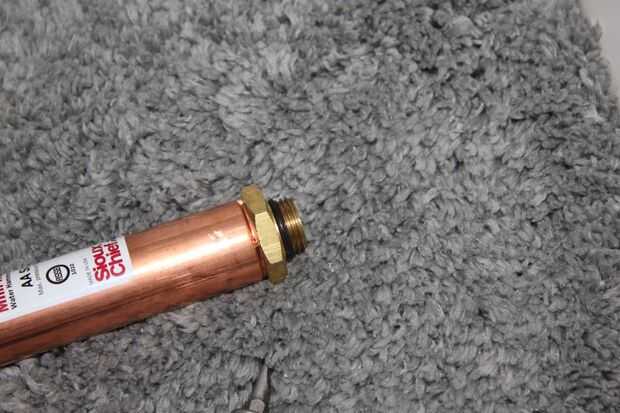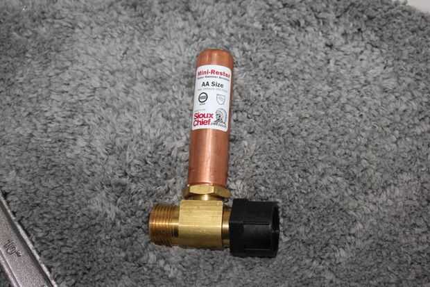 Esta es la parte del instructable que real fontaneros no gustan.  El Mini-rester tiene roscas rectas para que no funcione una entrerrosca de la pipa del hierro del 3/8"(3/8" MIP MIP de 3/8 ") o 3/8" adaptador de tubería de hierro (3/8" MIP MIP de 1/2").  "Hierro roscas" han afilado hilos y no se ajusta.  Sólo el 3/8" flare accesorio encajará.  Nota: "hierro" roscas pueden (y suelen) hecha de latón o bronce.  Guarniciones de la llamarada técnicamente deben ser utilizados con otras guarniciones de la llamarada, pero en este caso estamos utilizando la junta tórica y la cinta de teflón para intentar asegurarse de que no escape.