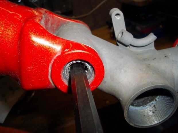Cuando extraiga el dos 5 mm allens, entonces uso un 8mm allen para empujar el perno de pivote largo.