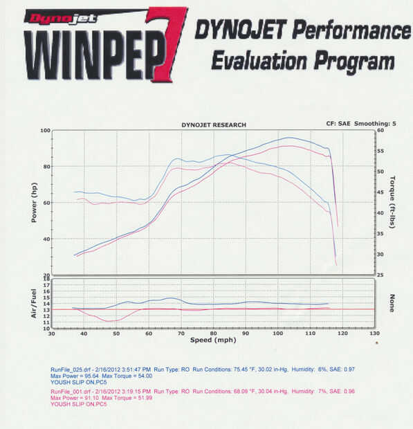 Por si alguien se preguntaba sobre lo que mi carta del dyno parece una después de la instalación, aquí. Eso es una ganancia de 4,54 hp y 2,01 libras de esfuerzo de torsión.