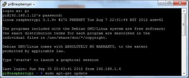 Si no está seguro de dirección escriba ifconfig en tu ssh-ventana. Debe ser por ejemplo 192.168.1.12.
