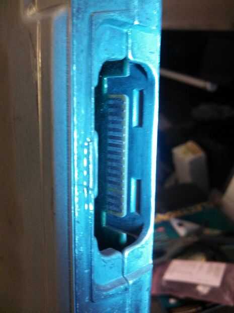3)-se deslizó el ordenador fuera de su soporte plástico, encuentra la tapa de plástico de goma pequeño alargado y forzadas de exponer el tablero de la computadora donde el sintonizador es enchufar. Ford muy amablemente aplicar cantidades de caucho a la Junta donde el sintonizador necesita enchufarse. Así, algunos rascado mucho cuidado con un pequeño, plano Destornillador de cuchillo pude bajar la mayor parte de él. Entonces frotó el resto de él apagado con la almohadilla pequeña suministrada de almohadilla de arañazos y rozaduras. Estar satisfechos con la limpieza de los contactos, "oré" que mi limpieza era suficiente e instalado el chip sintonizador de TS para la Junta y sellado nuevo con algunos agradable cinta de conducto.