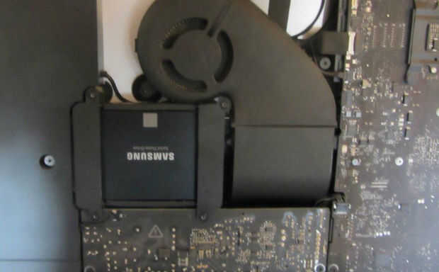 Enchufe la unidad SSD e instalarlo en el lugar del disco duro viejo. Atornille los soportes utilizando su fiel Torx.