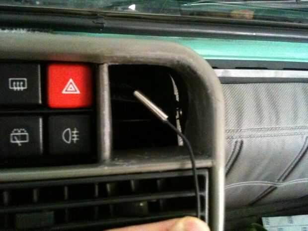 Así que sólo repetía STEP6 quitar el tablero de instrumentos, e hice un agujero en el lado izquierdo, en orden dejó el sensor (y el cable) transmite.