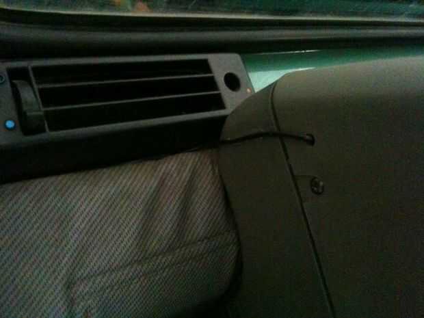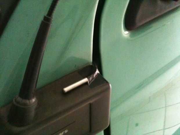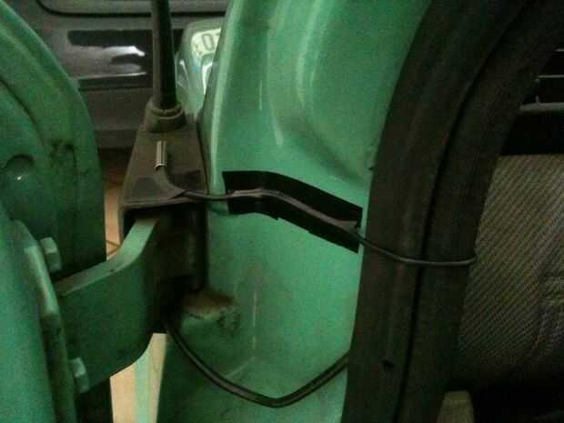 Nota: Pude configurar el cable de esta manera porque mi viejo coche tiene una amplia brecha alrededor de las puertas. Esta diferencia evita que cortar y romper el cable cada vez que cierro la puerta.