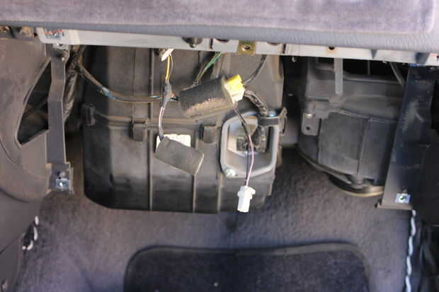 Después de recoger los materiales y las herramientas que necesitaba localizar una fuente de energía para aprovechar para el gadget. El macho enchufe cuando está enchufado en la pantalla se ilumina y despierta la brújula. No quiero todo el tiempo, por lo que determinaron al poder cuando las luces del tablero estaban en. La luz de la guantera también es activada por las luces del tablero por lo que es conveniente aprovechar. He quitado la caja de guante (unos tornillos) y expuestos los alimentos a la luz. Solía "Scotch Locks" pulse en línea para la energía. Usé el metro para encontrar alimentación positivo o caliente. Es el cable rojo. El cable blanco/negro receptáculo era plomo caliente. Usé el trenzado blanco y negro para extender el conexión correspondiente negro negro negro, negro/blanco-blanco-rojo. Es sólo un circuito simple en línea, sólo asegúrese de que el es justo y el suelo es demasiado. Luego necesito una ruta para el sensor en un lugar apropiado. Quité el interior panel para exponer la cavidad dentro del cuerpo del carro y para planificar una ruta para el sensor (que era la longitud de cable limitada) a una zona neutra de temperatura para la temperatura exterior.
