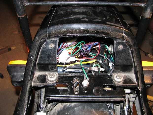 He creado otro telar pequeño despertador que corre paralela con el mazo y lleva los cables del centro de la moto hacia el compartimiento trasero.
