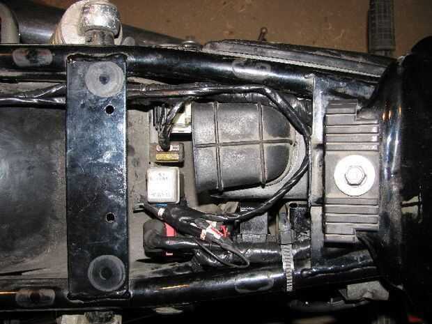 Porque no hay suficiente espacio libre detrás de la linterna, y no haya espacio debajo del asiento donde los batería/fusibles/arranque circuitos / relés son, he instalado el SPY5000 en el compartimiento posterior, detrás de la luz trasera de freno.