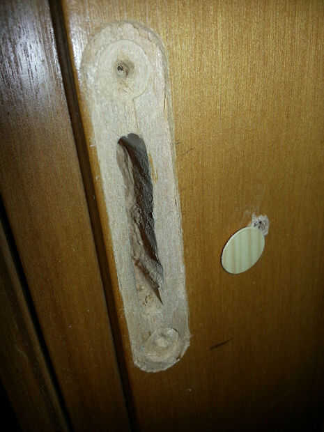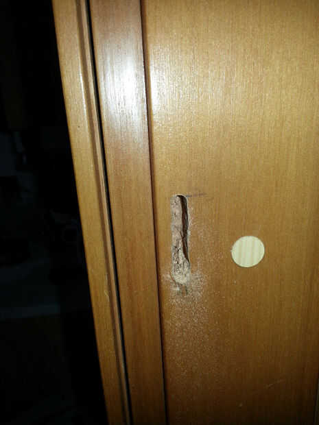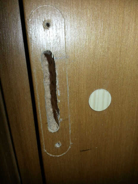 Instalar una cerradura de cajón en una puerta de corredera adaptados al falso (9 / 11 paso)