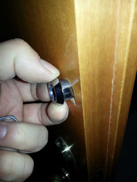 Medir la distancia de la cerradura y la puerta con una punta de madera del taladro. El agujero debe estar bastante precisas, constantes las manos entonces!
