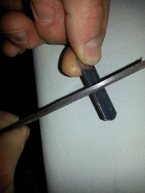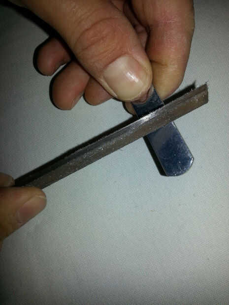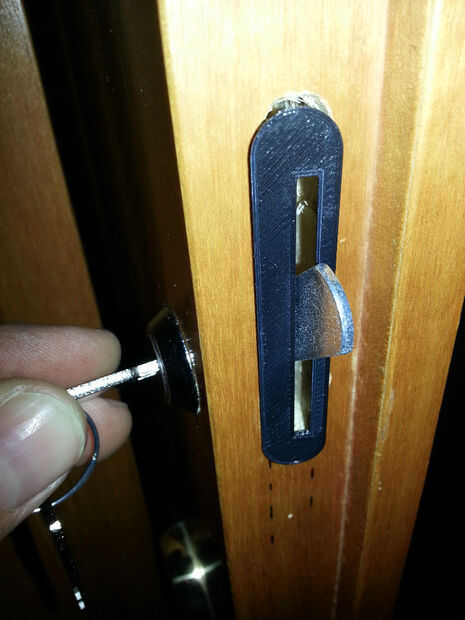 Extraiga el gancho del mecanismo de bloqueo ahora. Usted tendrá que presentar. El pequeño corte en el metal será lo verdadero enganche en la jamba, en el marco del metal atornillado en la jamba de la
