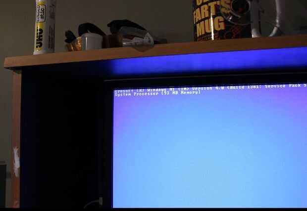 Conecte una pantalla y potencia para arriba y la pantalla azul confirma a 93 megas! 3 megas se pierden y no están disponibles para el sistema.