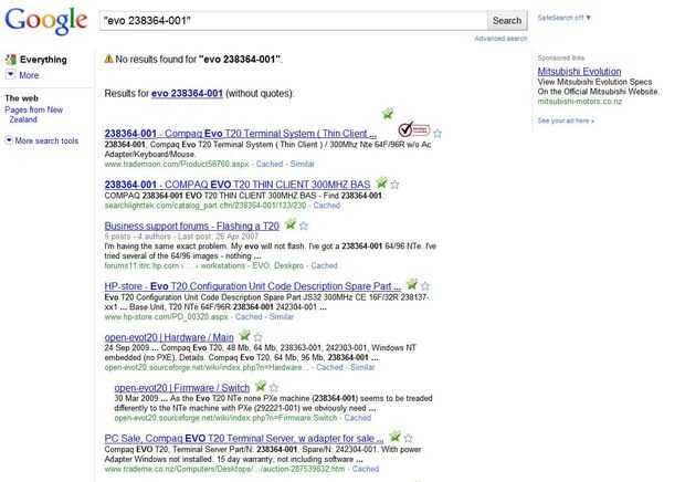 Esta búsqueda muestra que mi Compaq unidad 238364-001 es un Nte 64F/96R