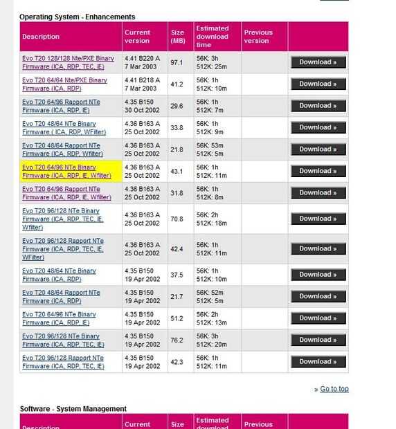 Evo T20 64/96 NTe Firmware binario (ICA, RDP, IE, Wfilter)