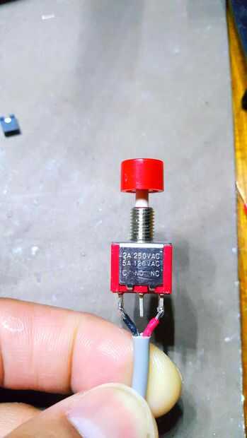 Este interruptor tiene NC y sin contactos. Necesito el NC para mis necesidades. Había soldado los cables en los pines correspondientes y ahora para el siguiente paso.