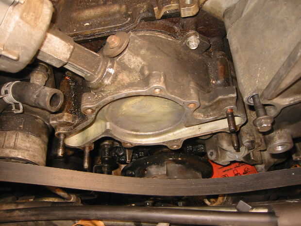 Después de la bomba de agua está apagado, raspe cualquier empaque viejo que todavía cuelga (pero otra vez no rayar el metal).